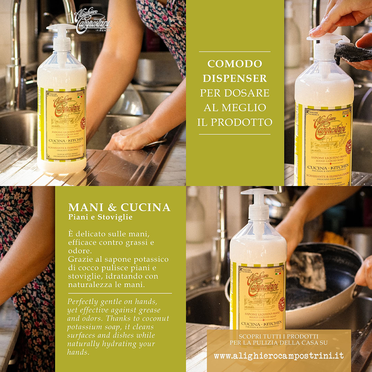【美人加油讚推薦】義大利 ALIGHIERO CAMPOSTRINI 義潔淨 MANI廚房白花香護手餐具液態皂+經典橄欖油家事皂