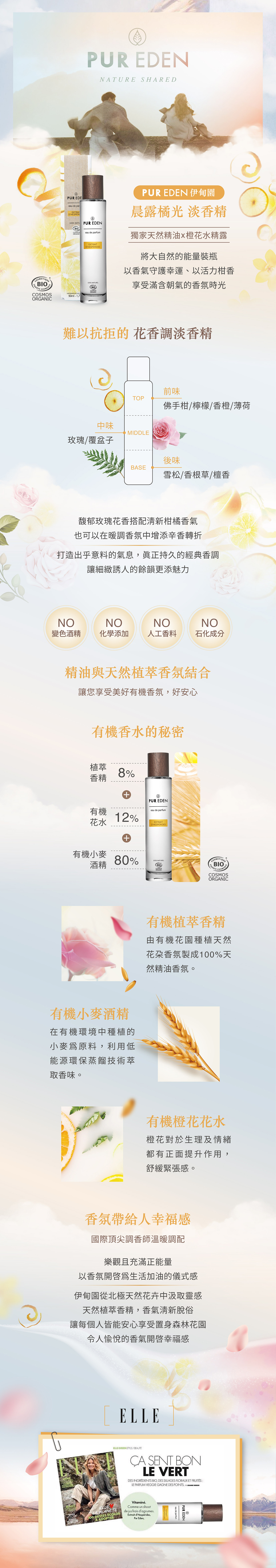 PUREDEN以獨家天然精油與橙花花精露調配而成的淡香水,馥郁玫瑰花香搭配清新柑橘香氣,暖調香氣中增添辛香轉折,譜出令人著迷的氣息,PUREDEN透過另一種形式將大自然的能量裝瓶,享受充滿朝氣的香氛時光。
