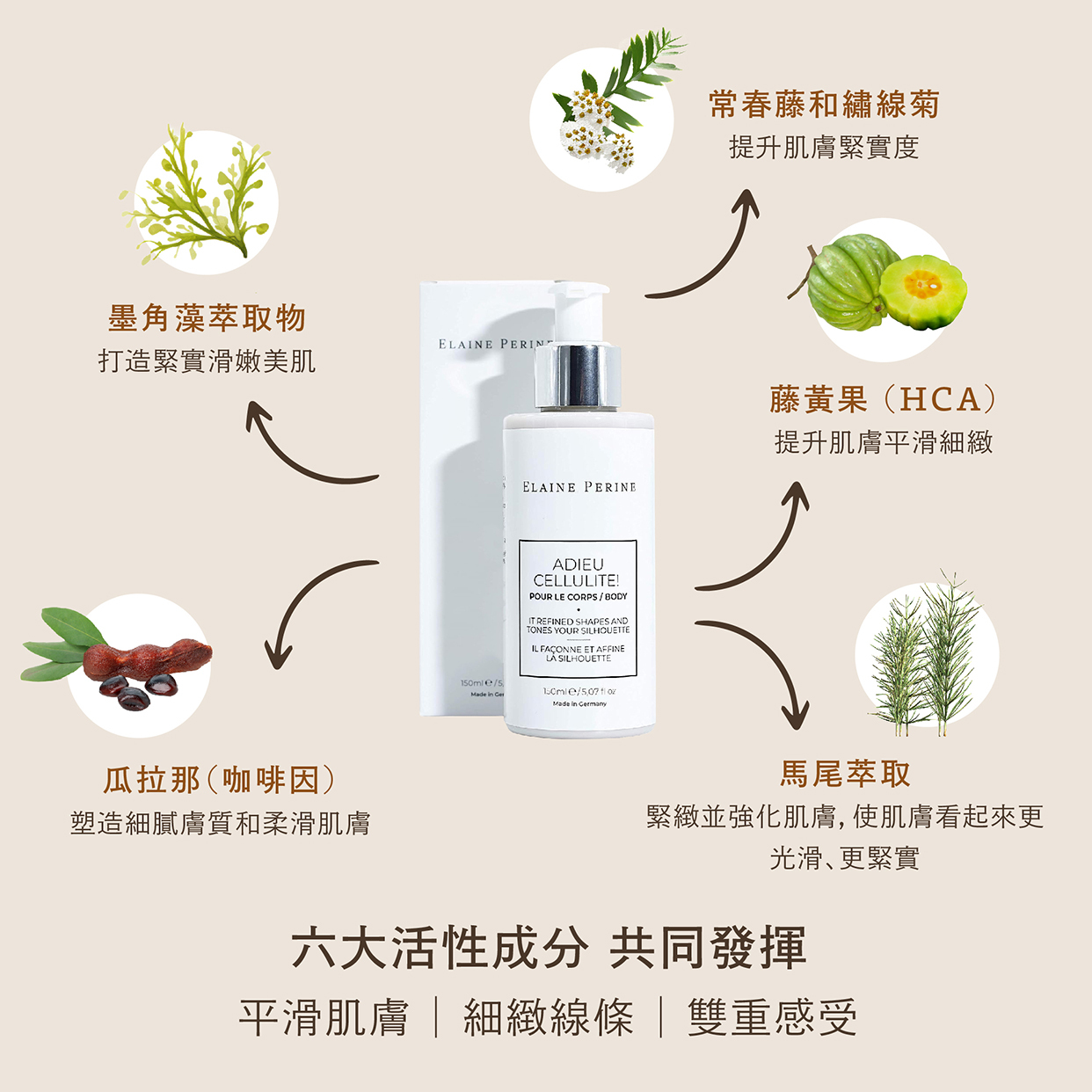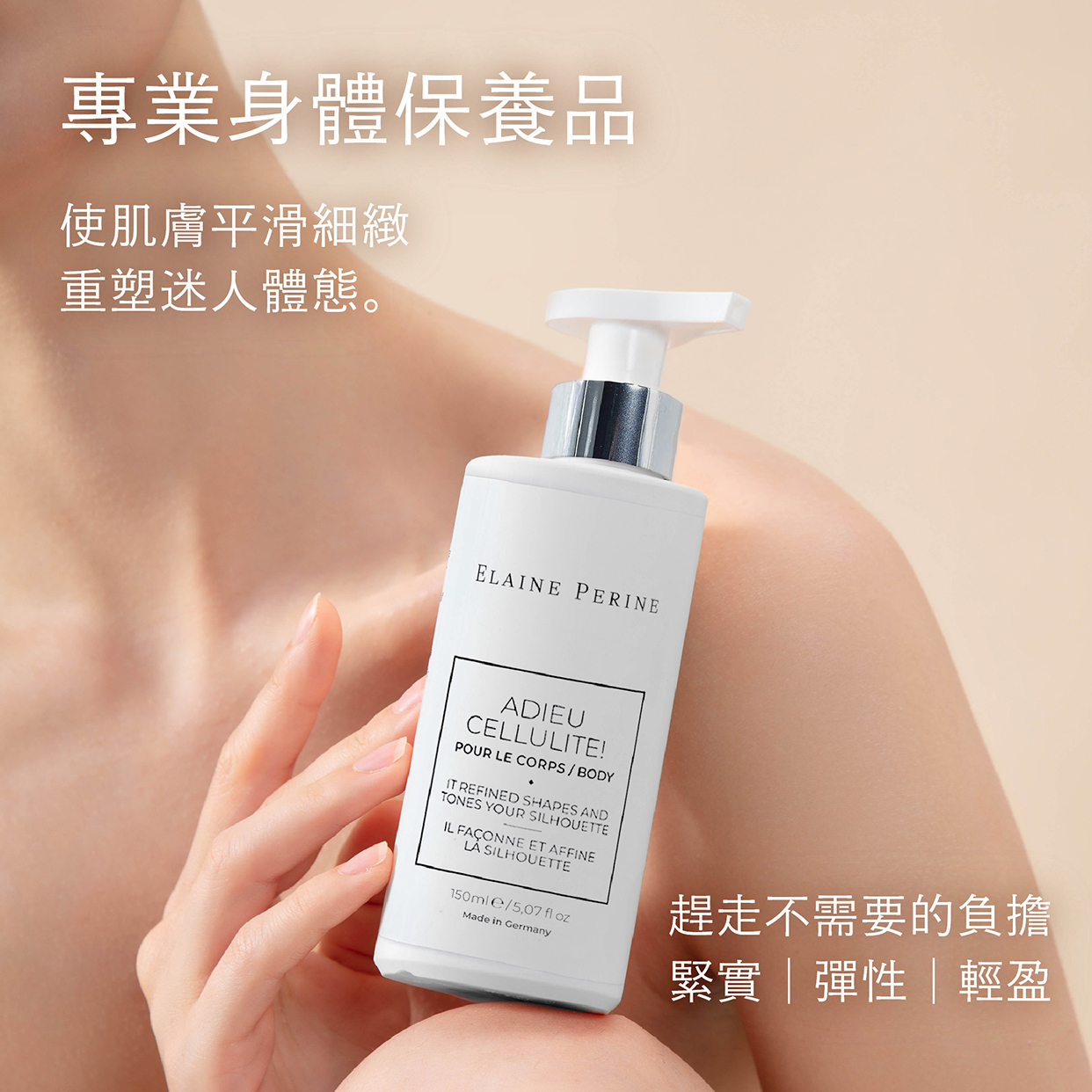 德國原裝進口專業身體保養品,趕走不需要的負擔使肌膚平滑細緻重塑迷人體態。含有活性成分的配方,質地豐潤柔滑,提供全方位的身體護理。