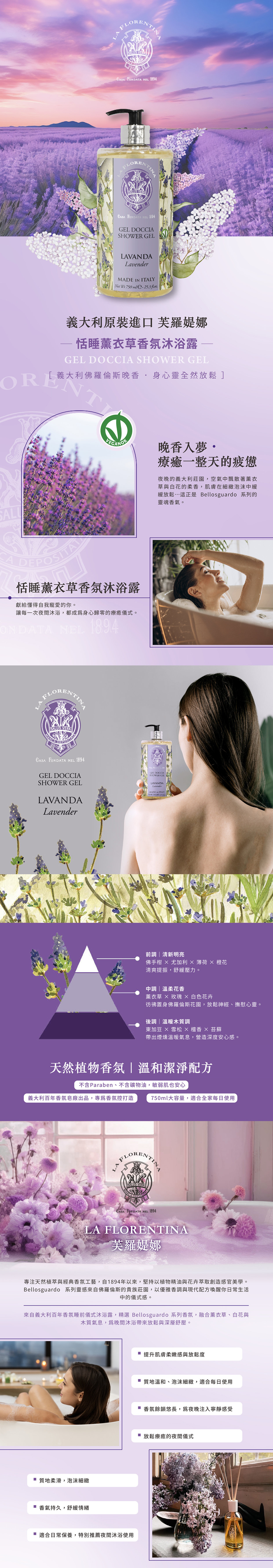 來自義大利百年香氛皂廠的經典之作,添加優雅細緻的薰衣草香氛,洗後肌膚清爽柔嫩、散發自然香氣。
