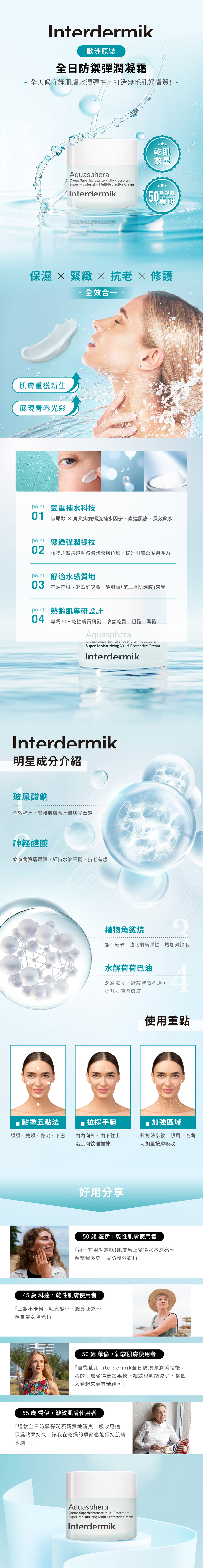 深層彈潤肌膚,提供持久保濕效果。增強肌膚彈性,對抗老化,令肌膚全日柔軟舒適。