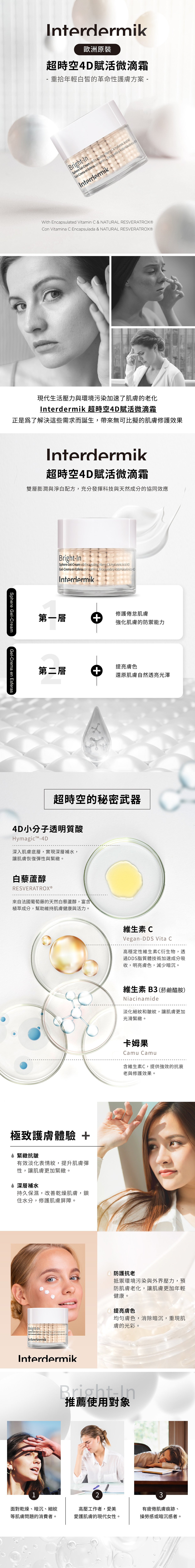 獨特雙向交叉精萃+霜混釋劑型設計,使肌膚維持淨白煥亮、緊緻與彈力,整張臉更加澎潤有光澤,維持零死角立體精緻。
