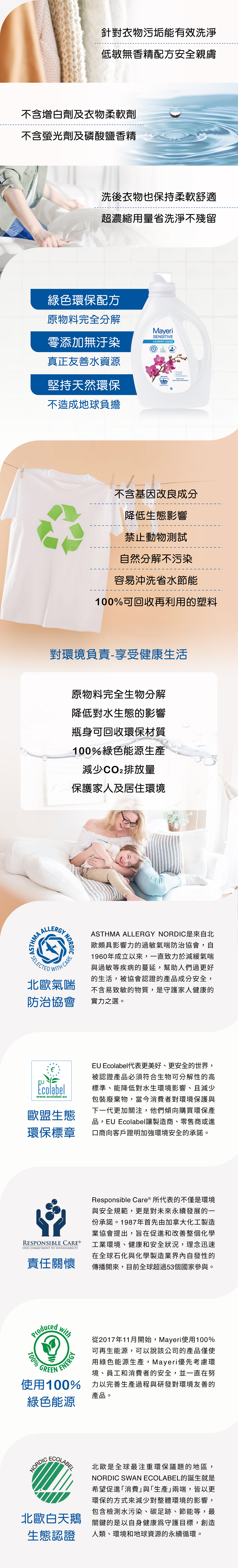 用途:專為敏感肌膚設計的低敏速淨配方,低泡沫、不阻塞紡織纖維,適用嬰幼兒衣物與貼身衣物,特含源自天然的淨化酵素,能溫和清除髒汙,適用軟硬水質,機洗手洗都適用,使用劑量超經濟,輕鬆省水洗滌又環保,EU Ecolabel認證有保障。