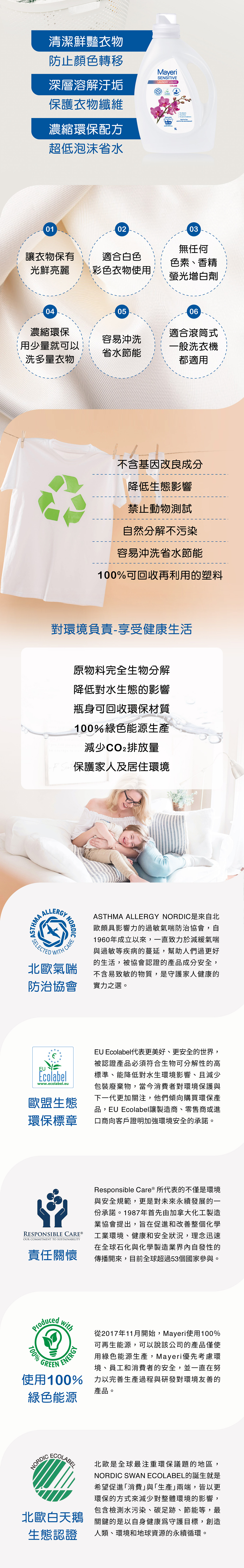 用途:專為敏感肌膚設計的低敏速淨配方,低泡沫、不阻塞紡織纖維,適用嬰幼兒衣物與貼身衣物,特含源自天然的淨化酵素及護色因子,能溫和清除髒汙並使衣物持色亮澤,適用軟硬水質,機洗手洗都適用,使用劑量超經濟,輕鬆省水洗滌又環保,EU Ecolabel認證有保障。