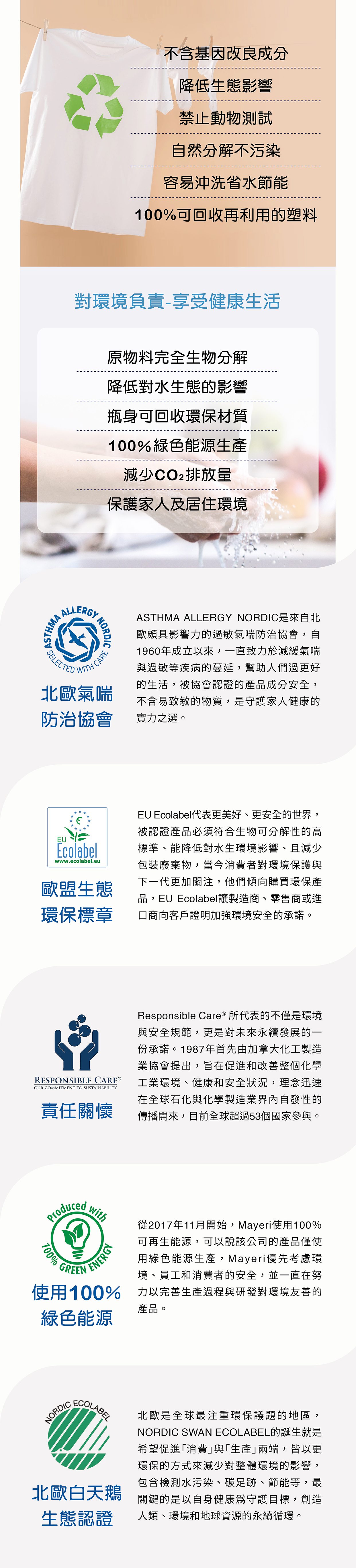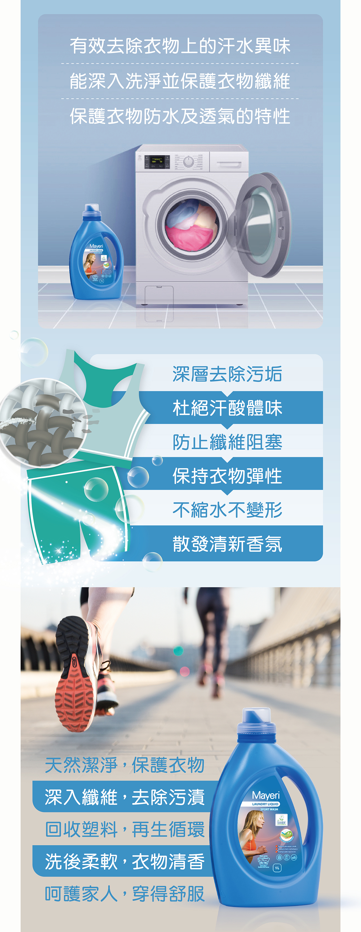 用途:專業清潔合成纖維以及混合纖維,能預防衣物變形,不損傷衣物透氣性與防風、防水特性,特含源自天然的淨化酵素,有效去除衣物上的汗水及異味,保持清新與衛生,適用軟硬水質,機洗手洗都適用,使用劑量超經濟,輕鬆省水洗滌又環保,EU Ecolabel認證有保障。