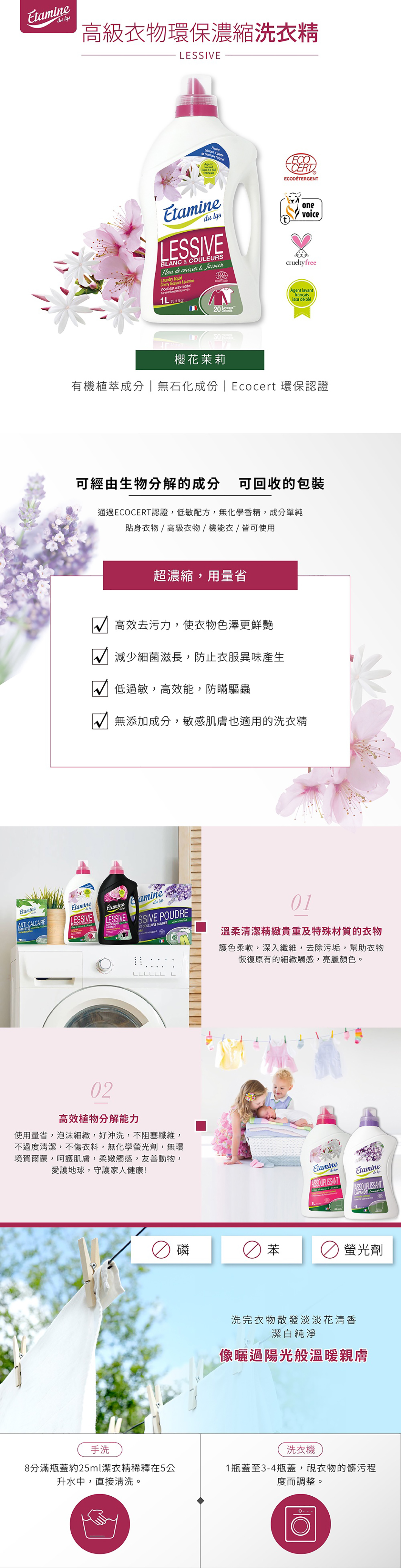 • ECOCERT認證,低敏配方,無化學香精、無螢光劑、無磷、無苯